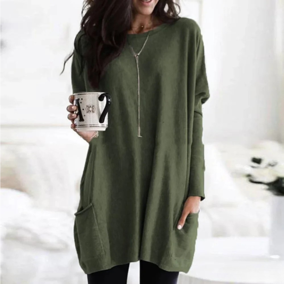 Erleben Sie ultimativen Komfort mit dem Anja™ Lässiges Taschen-Top. Dieses Oberteil aus weichem, plüschigem Strickstoff bietet Wärme und Stil in einem. Es ist Ihr Lieblingsstück für entspannte Tage oder lässige Ausflüge und kombiniert Gemütlichkeit mit mühelosem Stil.